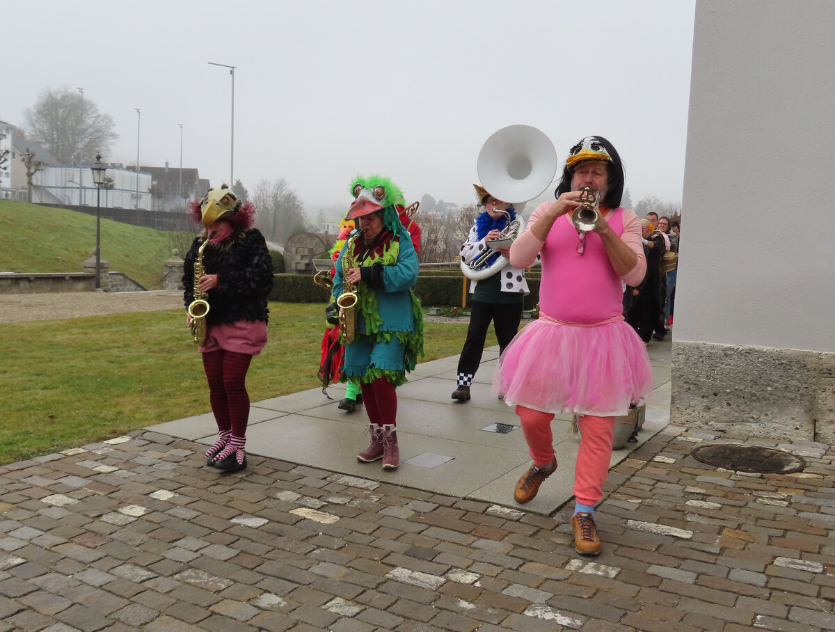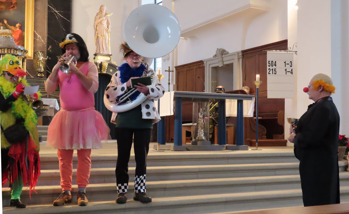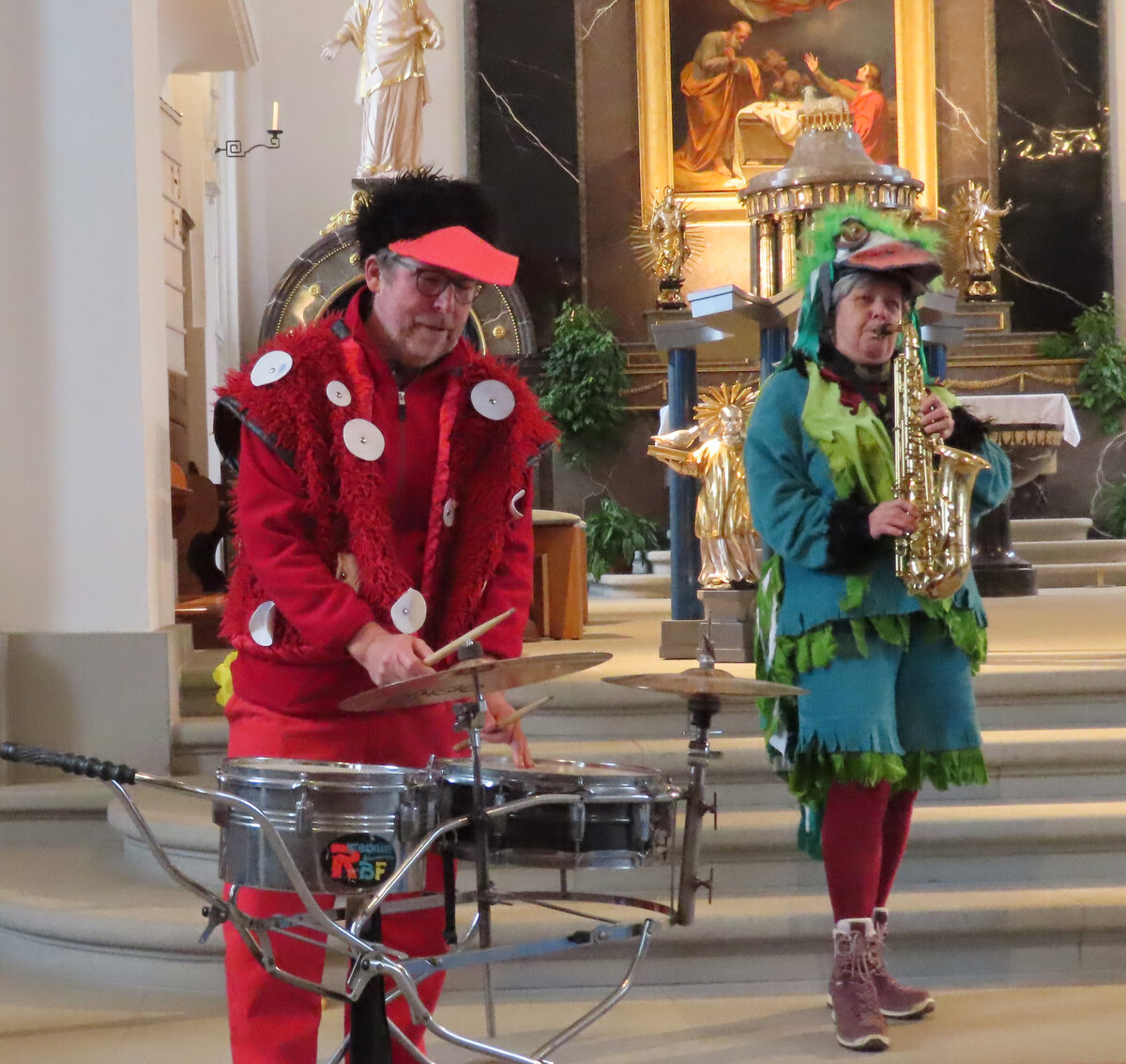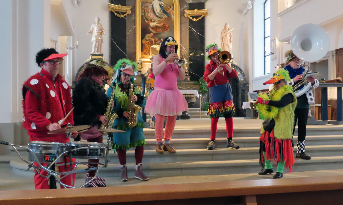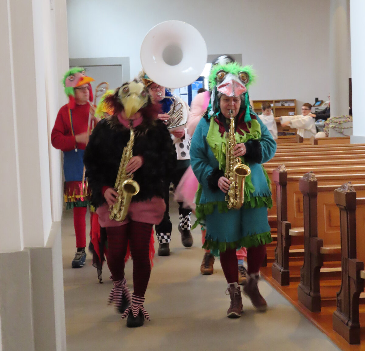 Die fröhliche Musikgruppe Ratatui bereicherte die Kommunionfeier mit lebhaften Klängen und erntete nach jedem Lied einen verdienten Applaus. Die Geschichte vom Gaukler, der keiner mehr sein wollte, passte gut zur Fasnachtszeit.