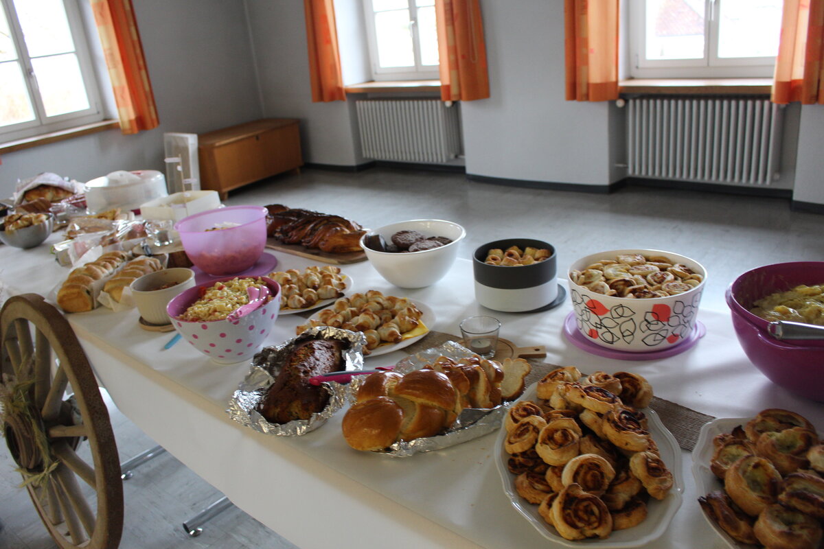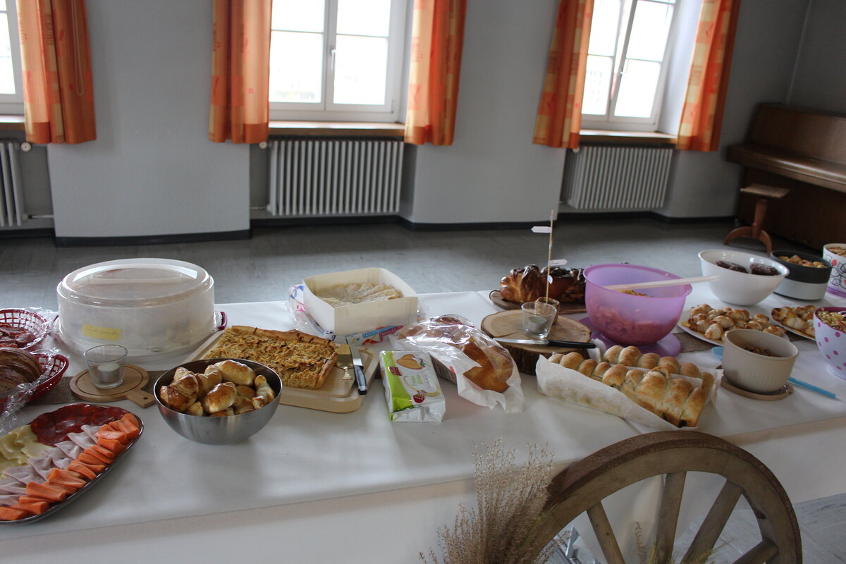 Nach getaner Arbeit erwartete alle die Teilete mit einem reichhaltigen Buffet. Es hatte für jeden Geschmack etwas im Angebot. So wurde nicht nur Gott gedankt für Speis und Trank, sondern auch den Köchinnen.