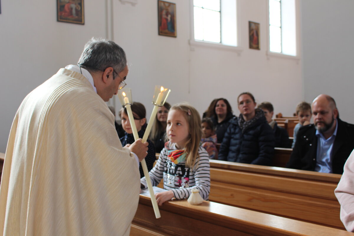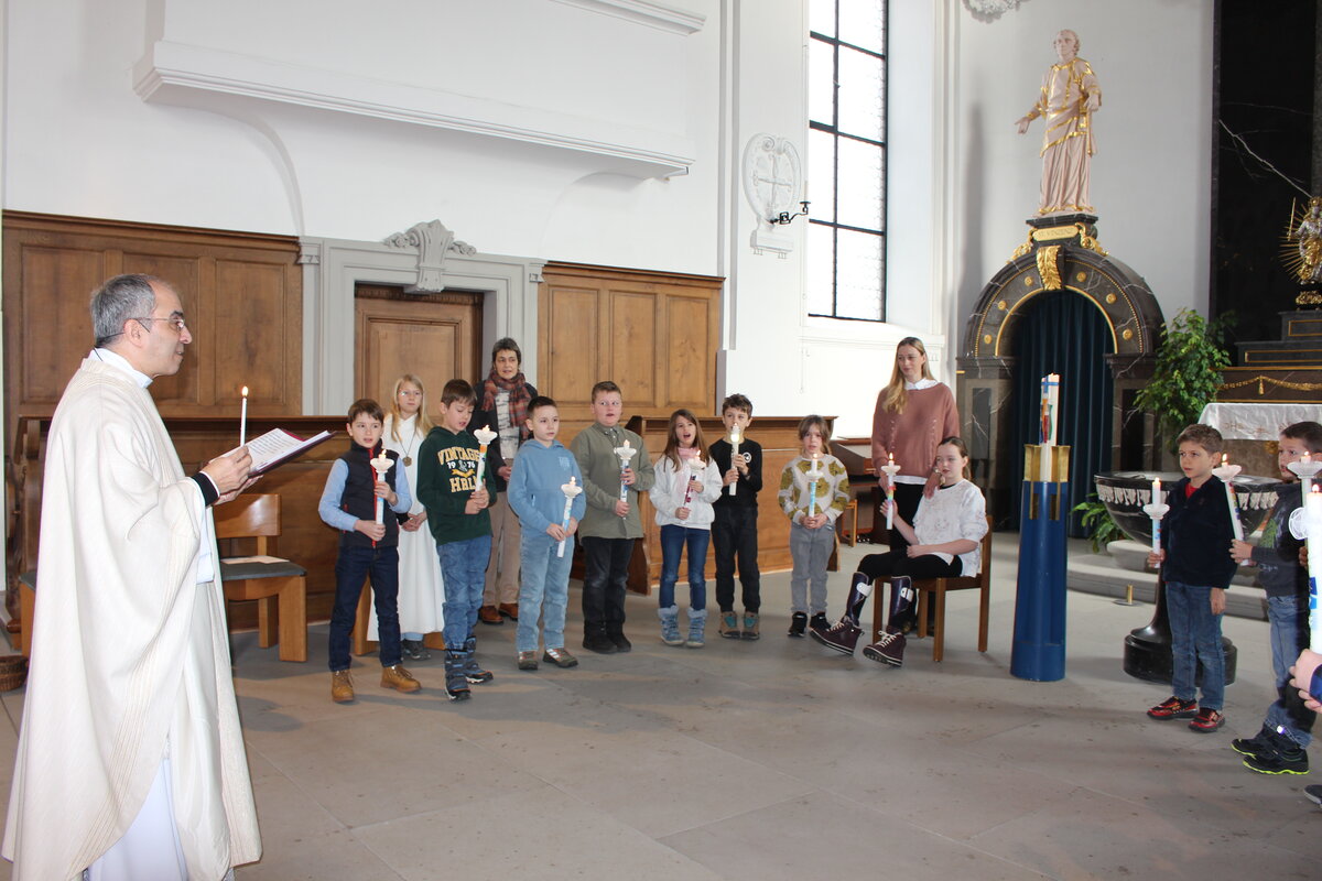 Als besonderes Extra erhielten die Kinder noch vor den anderen Besucherinnen und Besuchern den Blasius Segen. Im Volksglauben soll der Blasius-Segen vor allen möglichen Halskrankheiten bewahren. Der Priester hält dazu zwei gekreuzte Kerzen auf Höhe des Halses und spricht die Worte: "Auf die Fürsprache des heiligen Blasius bewahre dich der Herr vor Halskrankheit und allem Bösen". So sind wohl alle gut gerüstet für die Winter- und Fasnachtsferien.