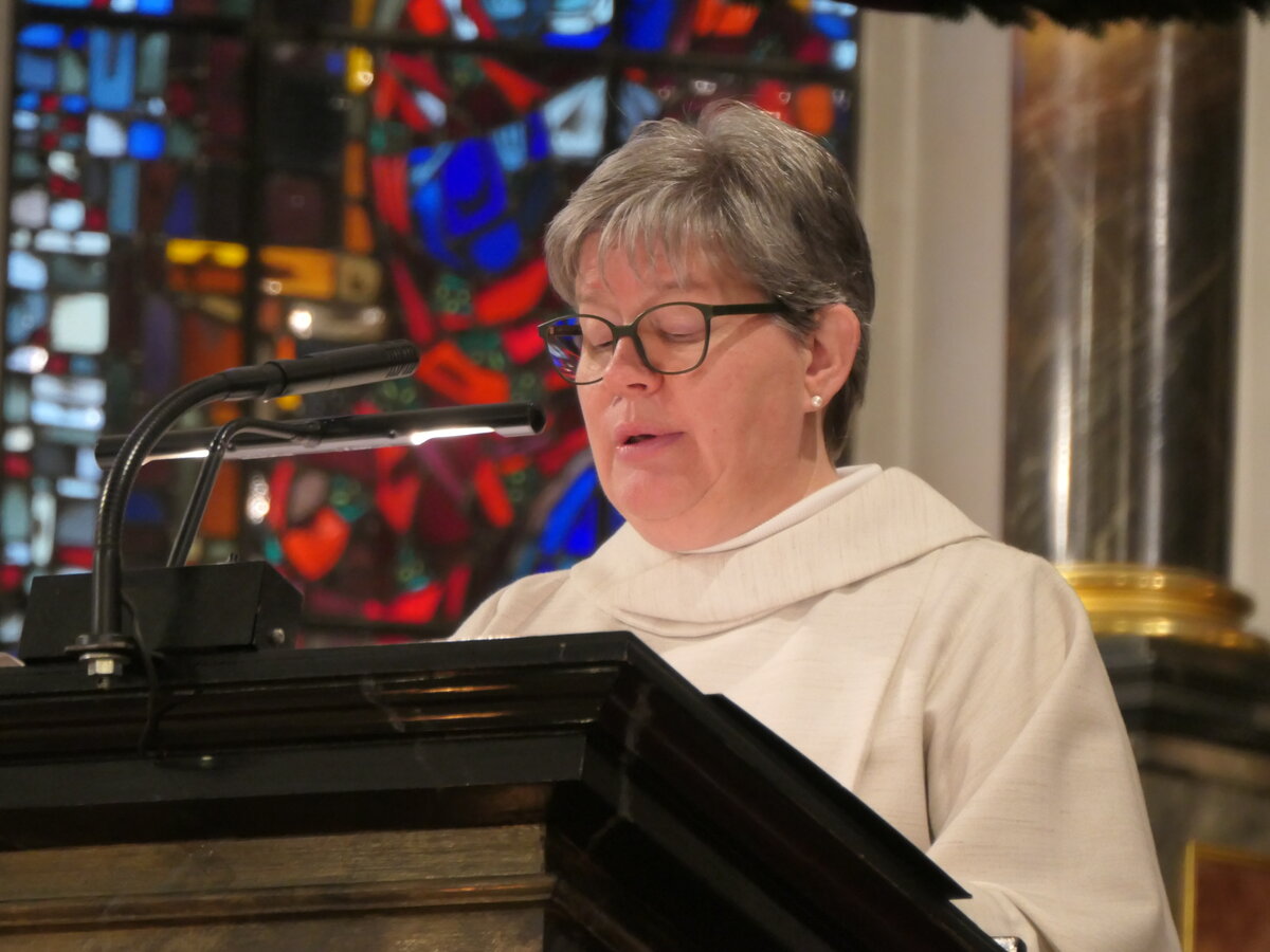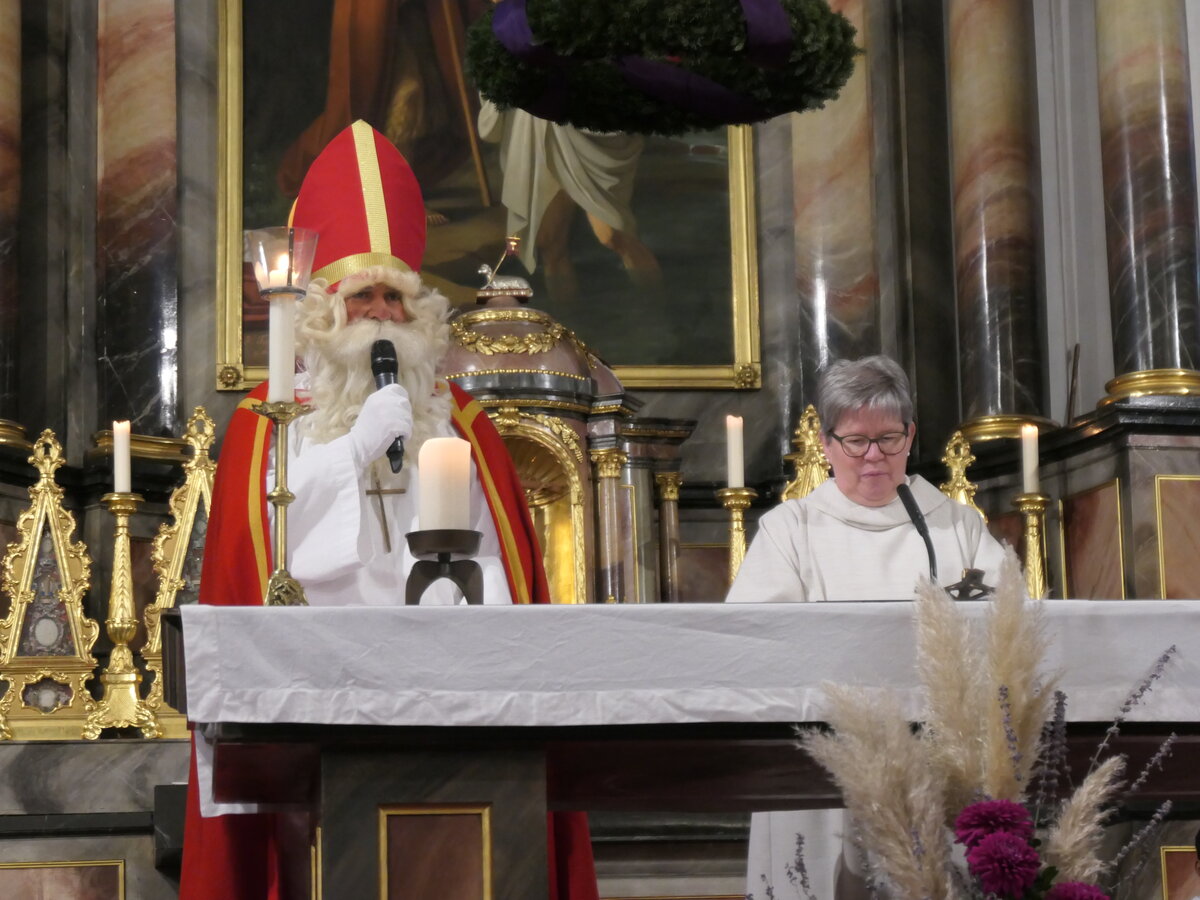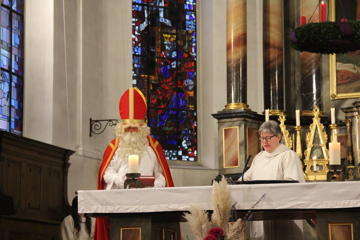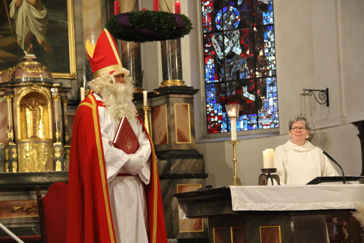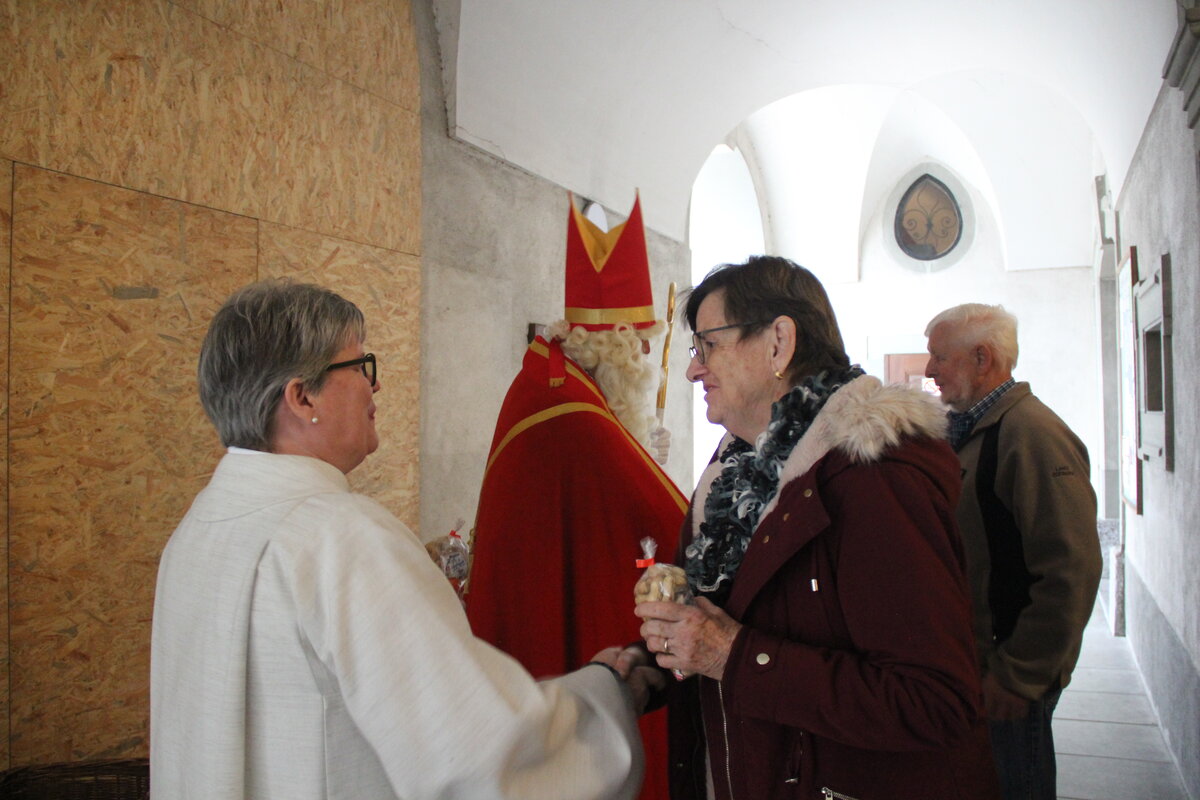 Seelsorgerin Christa Kuster begrüsst die Mitfeiernden im Gottesdienst in der Kirche Reiden. Mit Freude kündigte sie einen besonderen Gast an, den Samichlaus.