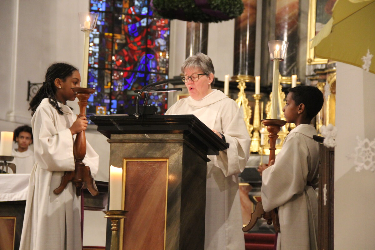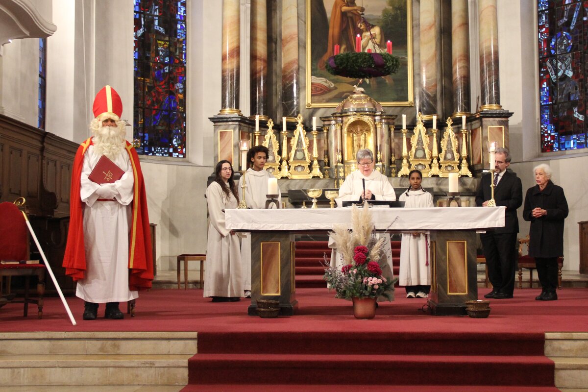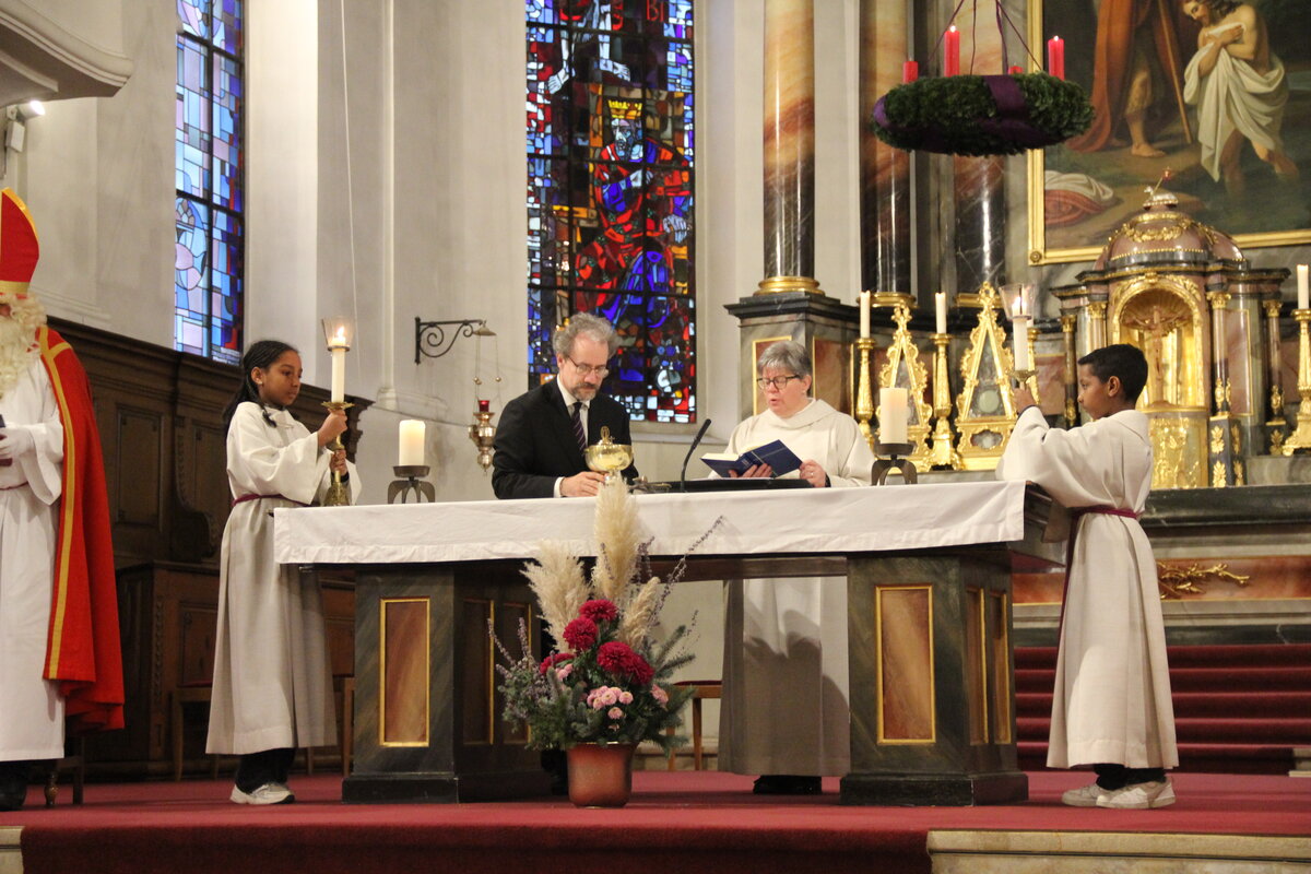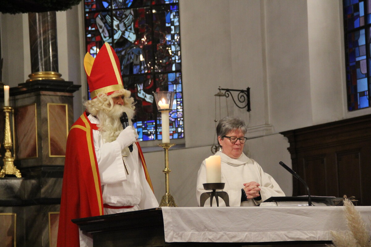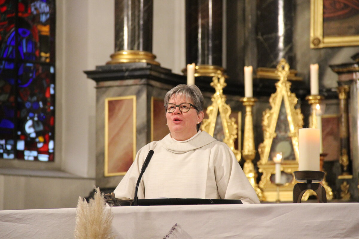 Seelsorgerin Christa Kuster begrüsst die Mitfeiernden im Gottesdienst in der Kirche Reiden. Mit Freude kündigte sie einen besonderen Gast an, den Samichlaus.