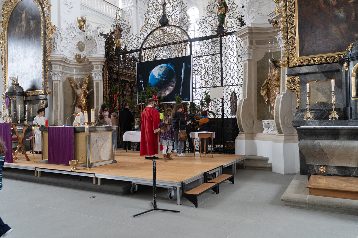 Diakon Sepp Hollinger zeigte mit seinem Team eindrücklich, dass ein Palmzweig auch zur Rute werden kann. Wie nah Freude und Jubel einerseits sowie Traurigkeit und Schmerz andererseits beieinanderliegen, wurde dabei deutlich.